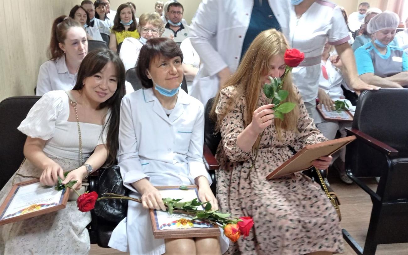 В канун Дня медицинского работника многих наших коллег наградили грамотами и объявили благодарности министерства здравоохранения Иркутской области, профсоюза медицинских работников, Иркутской областной клинической туберкулезной больницы. Было сказано много добрых слов, вручено роз и прекрасных тортов.