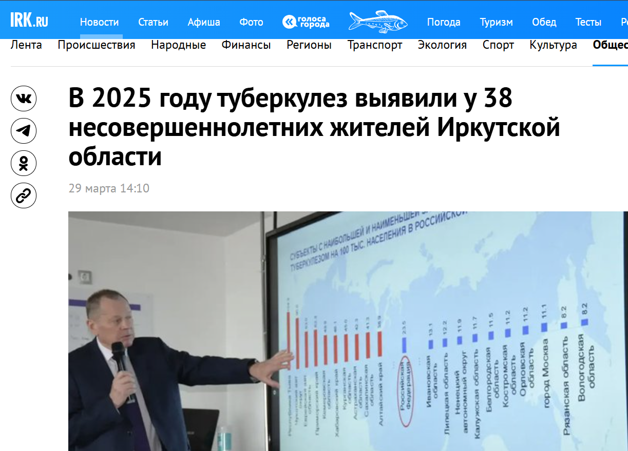 Новостной портал Ирк.ру опубликовал статистику по заболеваемости туберкулезом в Иркутской области. Особый акцент в публикации сделан на перечисление групп риска и десткой заболеваемости.